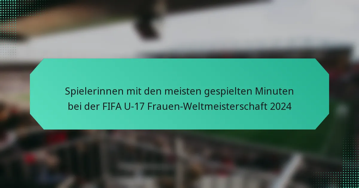 Mehrere Spielerinnen haben bei der FIFA U-17 Frauen-Weltmeisterschaft 2024 bemerkenswerte Auswirkungen gezeigt und ihre Fähigkeiten durch hohe gespielte Minuten unter Beweis gestellt. Diese herausragenden Athletinnen haben nicht nur defensiv beigetragen, sondern auch im Scoring und bei Vorlagen geglänzt, was ihre Bedeutung für ihre Teams demonstriert.